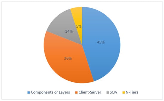 One of the particularities in our search is that no primary studies were found that used architectural patterns in microservices and fog and edge computing paradigms. The architectural approach of microservices has had a considerable increase in recent years because it allows agile development, rapid deployment, improving capacity for recovery from failures, and using the appropriate technology for each microservice, considering important issues such as the required effort, implementation costs, infrastructure, and maintenance, among others []. Some important benefits of implementing a microservices approach are the following []: