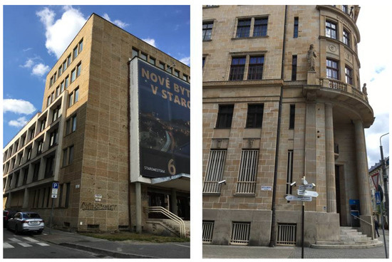 Two of the many buildings in Bratislava (Slovakia) with Hořice sandstone facades.