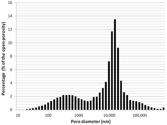 Pore-size distribution of the Hořice sandstone determined by Hg-porosimetry.