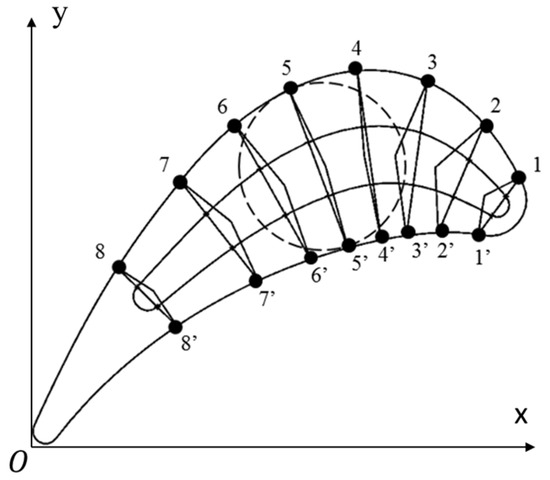 Figure 5. Parametric modeling of blade cavity with variable wall thickness. - Determine the corresponding eight feature control points on the pressure side profile using geometric constraints based on inscribed circles at the feature control points.