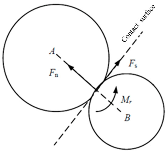 The rolling resistance contact model of Oda et al. [24] and Jiang et al. [25] has received widespread attention, and its main mechanical principles are