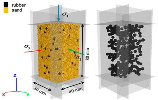 Numerical true triaxial model of rubber–sand mixtures with RC = 10%.