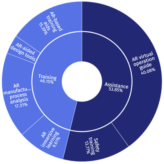 Distribution of different subcategories of AR use in context of industrial assistance and training.