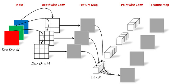 Depthwise separable convolution (DSC), first proposed by Sifre et al. [26], gained widespread recognition when it was introduced in the MobileNet model by the Google team in 2017 [27]. The fundamental concept of MobileNet involves significantly reducing computational complexity and model size by employing DSC.