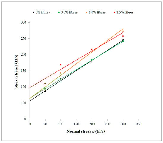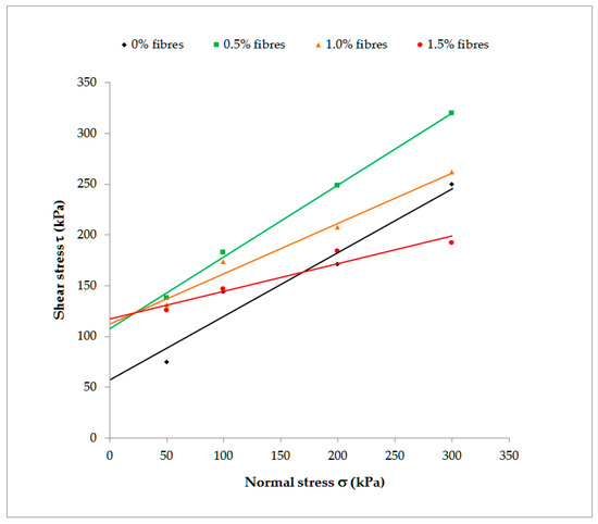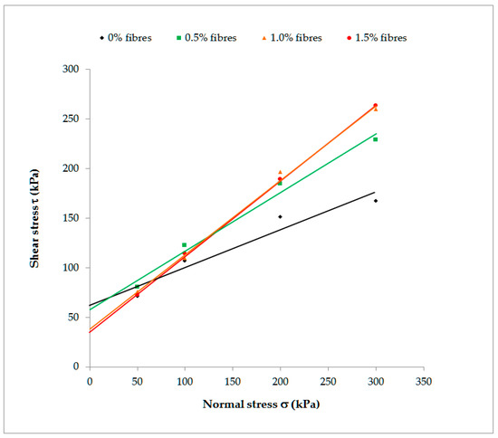 Differences in shear strength parameters for various amounts of fibres (i.e., improvement), considering all four specimens (case No. 1), are introduced in Table 7.