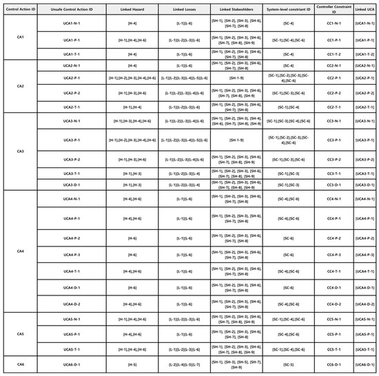Figure 2 presents a framework based on the existing STAMP/STPA methodology, with the addition of STEP 0 and STEP 4 to the conventional STPA steps. STEP 0 considers the early stage of the system and defines the necessary aspects for analysis based on the existing literature and case studies. Furthermore, two approaches were employed to enhance cost-effectiveness, which is one of the objectives of this research. In a typical STPA, stakeholders are identified to define losses. However, because of the nature of the system under consideration, which involves a wide range of stakeholders, the framework aims to maintain traceability by linking stakeholders with losses, preventing redundancy in resource allocation and roles. The other approach is to prioritize risk migration using a risk matrix, enabling cost-effective operations.