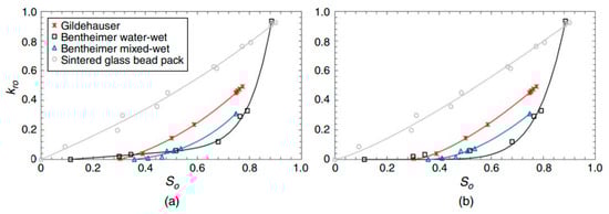 - Oak, M.J.; Baker, L.E.; Thomas, D.C. Three Phase Relative Permeability of Berea Sandstone. J. Pet. Technol. 1990, 42, 1054–1061. [Google Scholar] [CrossRef]