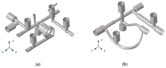 - Alshare, A.A.; Calzone, F.; Muzzupappa, M. Hydraulic manifold design via additive manufacturing optimized with CFD and fluid-structure interaction simulations. Rapid Prototyp. J. 2019, 25, 1516–1524. [Google Scholar] [CrossRef]