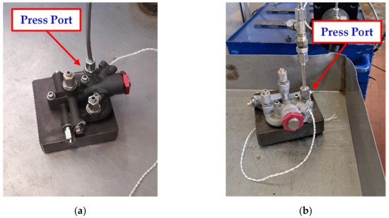 - Hydraulic fluid supplied to the press port, and a pressure value recorded by means of a pressure transducer (Figure 13a). All other ports were closed with actual plugs and hydraulic fittings;