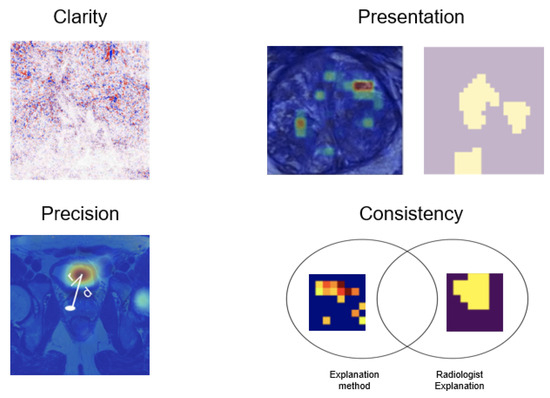 Regarding clarity, radiologists mentioned the importance of clear methods; otherwise, they could be distracting. For presentation, it is essential to display either a heatmap or binary map. Precision refers to how accurately the heatmap localizes the lesion. Finally, consistency relates to the radiologists’ preference for a method that explains in a manner consistent with their own approach. This analysis provides valuable insights into the key factors that contribute to the effectiveness of explanation methods for medical imaging, which can inform the design of future techniques.
