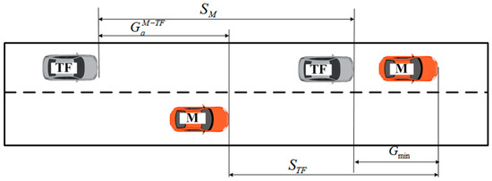 Acceptable lane changing clearance between vehicle M and vehicle TF.