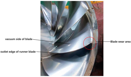 Figure 5 shows a runner that has been in service for some time. It can be seen intuitively that the worn area of the runner blade is at the water edge, with the most severe wear occurring at the junction between the blade’s water edge and the runner’s lower ring. This observation aligns with the wear positions and trends predicted by the numerical analysis of the runner’s internal flow field.