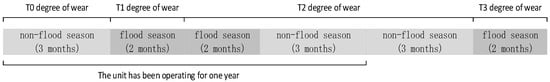 Operation history of hydraulic turbine in flood season and non-flood season.
