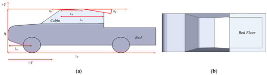 Schematic of pickup truck geometry. (a) Side view; (b) top view.