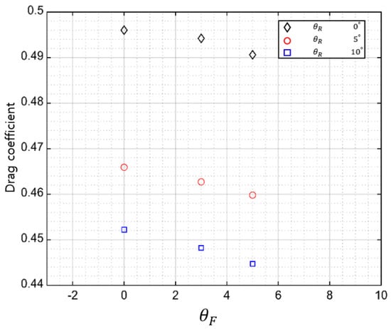 The influence of the change in the front angle of the roof on the drag coefficient was analyzed. For the analysis, the front angle was changed to 0°, 3°, and 5°, whereas the other conditions ( and rear angle) remained the same.