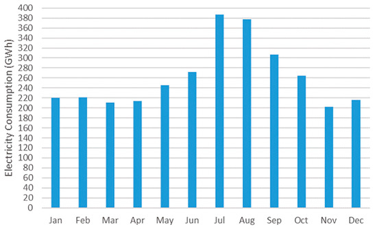 Crete is the fifth biggest island in the Mediterranean and the largest in Greece, with a population of around 620,000 people living on an area of 8303 km2. During the tourist season, which lasts from May to October, Crete’s population and demand for electricity increase. Since November 2021, Crete’s energy suppliers and providers have participated in the Hellenic Energy Exchange (HEnEx). The HEnEx’s platform provides the island’s hourly electricity demand [28]. In Figure 1, the monthly electricity consumption for 2023 is illustrated: