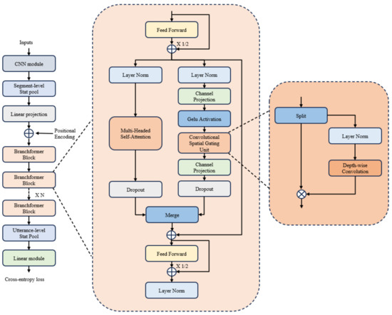 - Peng, Y.; Dalmia, S.; Lane, I.; Watanabe, S. Branchformer: Parallel mlp-attention architectures to capture local and global context for speech recognition and understanding. In Proceedings of the International Conference on Machine Learning, Baltimore, MD, USA, 17–23 July 2022; pp. 17627–17643. [Google Scholar]