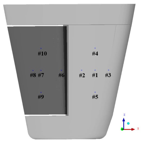 The positions where the pressure sensors were installed on the fin and rudder are shown in Figure 5, with a total of 15 sensors deployed. Some points are not shown in Figure 5, but their locations can be derived from Table 4.