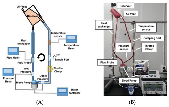 - Woelke, E.; Klein, M.; Mager, I.; Schmitz-Rode, T.; Steinseifer, U.; Arens, J.; Clauser, J.C. Miniaturized Test Loop for the Assessment of Blood Damage by Continuous-Flow Left-Ventricular Assist Devices. Ann. Biomed. Eng. 2020, 48, 768–779. [Google Scholar] [CrossRef] [PubMed]
