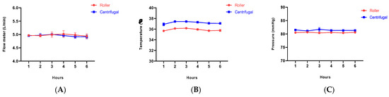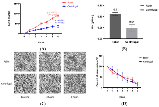 3.4. Mechanically Induced Hemolysis Analysis in Roller and Centrifugal Pumps