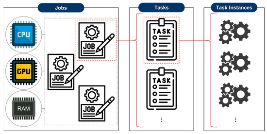 Hierarchical structure of jobs, tasks, and task instances in our scheduling.