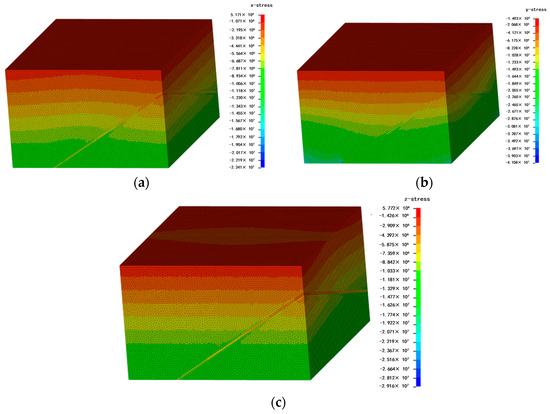 Geostress balance’s resultant diagram: (a) x-stress, (b) y-stress, and (c) z-stress.