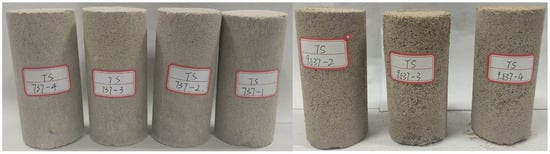 A mining pressure laboratory YA–600–type press was used to complete these experiments, with each group of proportioning numbers used to produce four standard test blocks for experiments, with test block molds made via homemade processing; this time, a total of 12 groups of proportioning numbers of test blocks were made, with a total of 48 standard test blocks, as shown in Figure 9.