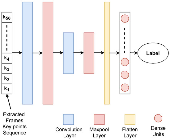 Figure 4, the classification module encompasses various vital components, including the convolution layer, MaxPool layer, Flatten layer, and dense units. The computational pipeline commences with applying the convolution layer, effectively capturing essential spatiotemporal features from the input key points. Subsequently, the MaxPool layer is employed to reduce the dimensionality of the extracted features while preserving crucial information. As a subsequent step, the Flatten layer is introduced to transform the output of the MaxPool layer into a one-dimensional vector representation. Finally, the compressed and structured representation is fed into a fully connected layer comprising dense units to facilitate the detection and identification of instances of fall events. The network structure and parameters of the classification module are presented in