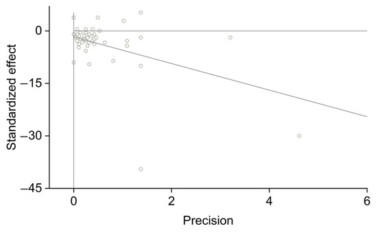 Egger’s publication bias test is one of the commonly used methods for assessing publication bias in meta-analysis. It is based on the principle of regression analysis, examining the relationship between the effect size of studies and their precision (usually standard error) to determine if there is publication bias. If publication bias exists, an asymmetric pattern in the relationship between effect size and precision is typically observed. This study employs Egger’s publication bias test to conduct a publication bias assessment (Egger’s publication bias test, Figure 1 and Figure 2).