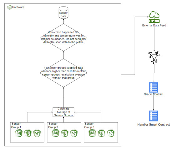 Oracles are crucial in the proposed system, bridging the gap between smart contracts and real-world data sources. Chainlink is selected as the oracle provider due to its decentralized and integrable nature. Oracles retrieve data such as temperature, product conditions, and transfer times, enhancing the smart contract’s decision-making capabilities.