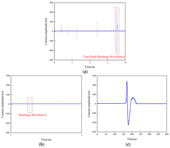 Multiple experiments collected a large number of waveforms of tree flash fault discharges. Typical discharge waveforms are shown in