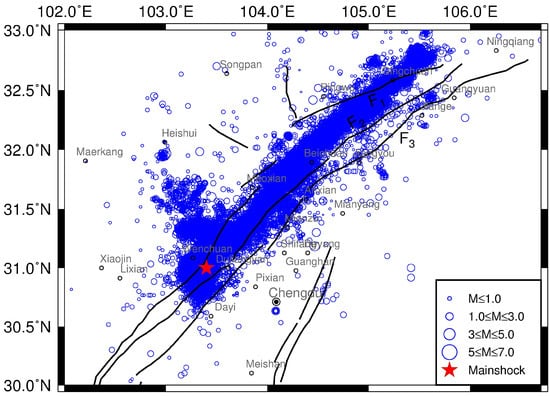 The aftershock catalog of the Wenchuan earthquake used in this study was retrieved from the Sichuan Provincial Seismological Bureau, and the location and magnitude of the aftershock events were determined using the Sichuan provincial seismic network (Figure 1). The applied aftershock catalog covers the period from 12 May 2008 to 29 December 2008.