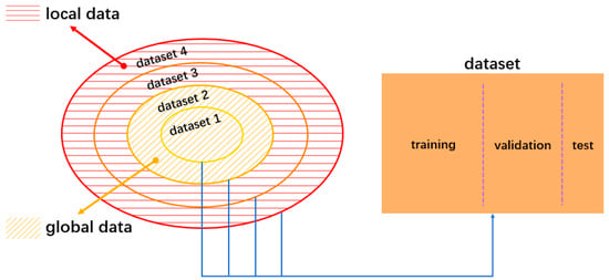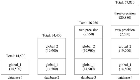 Four datasets are sampled for the self condition, as shown in Figure 5. Dataset 1 (global_1) constitutes 1450 data in the global area by the Latin hypercube sampling method, making the total data 14,500 given 10 working conditions. Dataset 2 adds 19,900 (1990  10) global data to dataset 1. Dataset 3 takes two-precision sampling to include 1280 (27 × 10) local data (the exponent 7 refers to 7 input parameters). Some experiments are performed to refine the sampling accuracy, and 1270 local data are added, making the total local data 2550. Dataset 4 further includes 21,870 (37 × 10) local data by three-precision sampling. With the repetitive data by two-precision sampling excluded, 20,880 data are added in addition to Dataset 3.