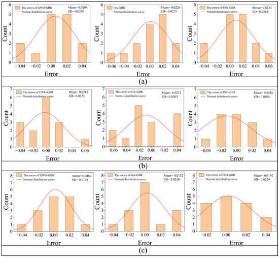 To better demonstrate the performance of the first three models for predicting Z-PPV, the results of the prediction of the validation set using GWO-GBR, GA-GBR, and PSO-GBR are shown in Figure 10. Additionally, the parameters of these models are shown in Table S3.