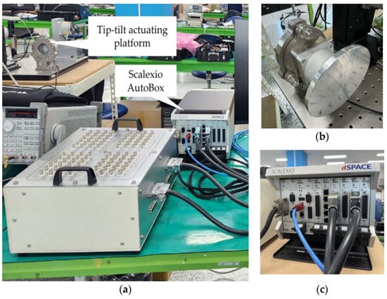 (a) FSM control system; (b) tip-tilt actuating platform (PI Ceramic GmbH); and (c) Scalexio AutoBox (dSPACE).