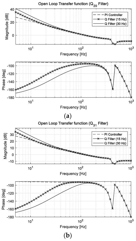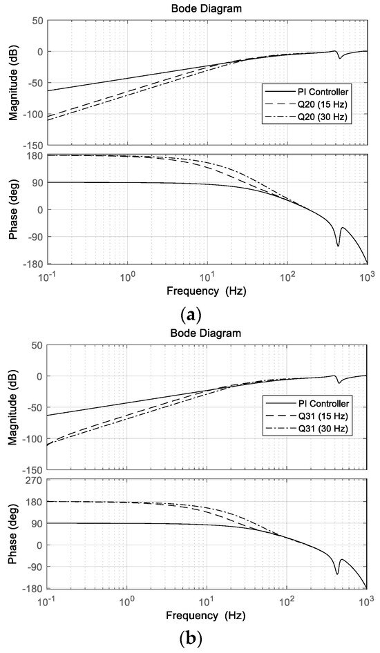 where KP and KI are the proportional and integral gains, respectively, and their values are 0.5 and 900, as determined using Equation (3).