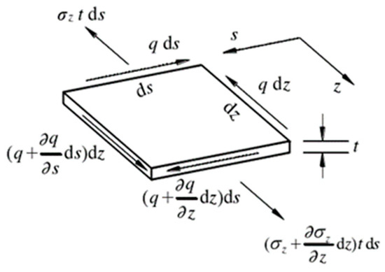 According to the mechanical equilibrium conditions, the resultant force of the thin-walled element shown in Figure 4 is zero along the -axis: