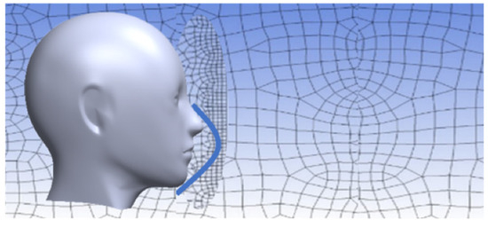 Mesh study using finite element analysis (the blue line represents the face mask profile).