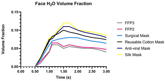 The plot shows the different volume fractions of H2O at the wearer’s face when wearing different masks.
