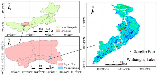 Geographic location of Wuliangsu Lake and sampling locations.