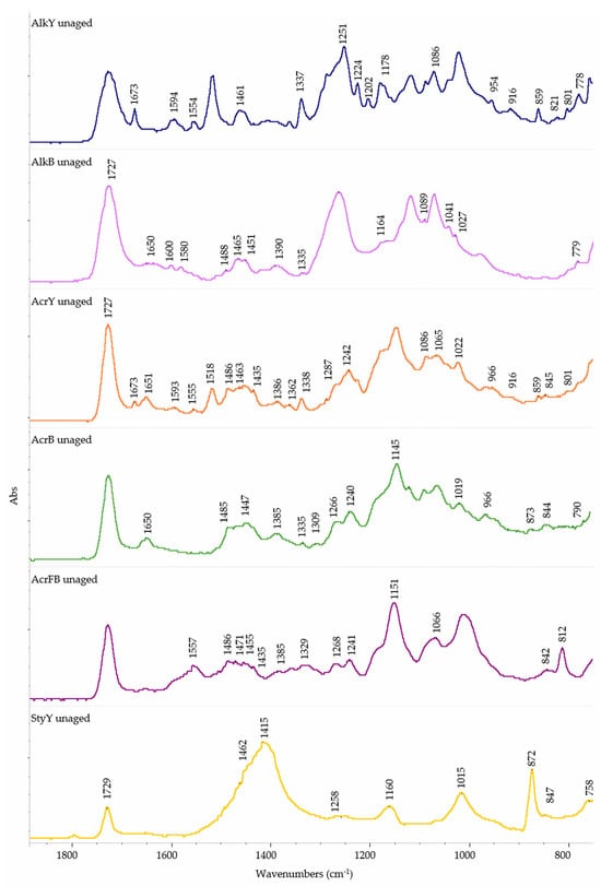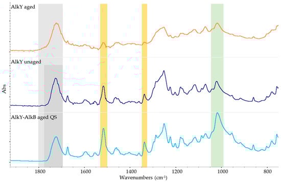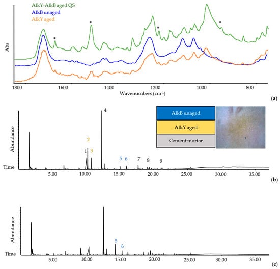 - Pellis, G.; Bertasa, M.; Ricci, C.; Scarcella, A.; Croveri, P.; Poli, T.; Scalarone, D. A Multi-Analytical Approach for Precise Identification of Alkyd Spray Paints and for a Better Understanding of Their Ageing Behaviour in Graffiti and Urban Artworks. J. Anal. Appl. 2022, 165, 105576. [Google Scholar] [CrossRef]