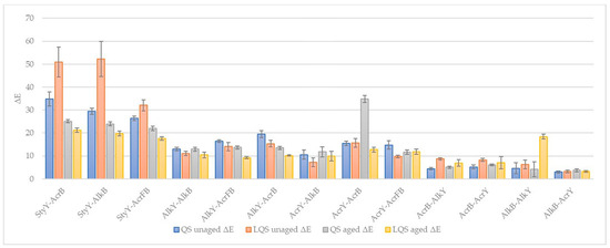 - Pintus, V.; Wei, S.; Schreiner, M. Accelerated UV Ageing Studies of Acrylic, Alkyd, and Polyvinyl Acetate Paints: Influence of Inorganic Pigments. Microchem. J. 2016, 124, 949–961. [Google Scholar] [CrossRef]