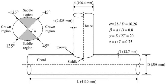 The geometry of the T-shaped tubular joint is illustrated in Figure 1. The values of geometrical parameters are in the range of application of Efthymiou equations recommended by DNV [8].