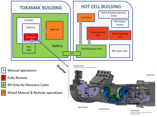 29] system will be operated from a dedicated control room, approx. 1km away from the reactor and designed for full remote operation. The intention is to manage all the necessary equipment for specific RH tasks from a single operations bench known as the RH standard work cell. Given that numerous RH operations will be executed concurrently, the plan is to incorporate multiple work cells within the RH control room.