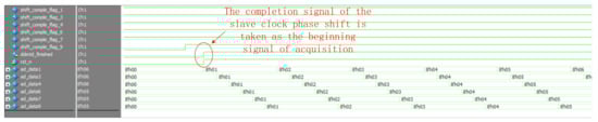 DDMTD is then used to determine the phase relationship between the master and slave clocks, and the phase of the slave clock is shifted by the dynamic phase shift function of the clock phase-locked loop. Once the phase shifts of all slave clocks are completed, the NoC-based TI-ADC will start, as shown in Figure 14.