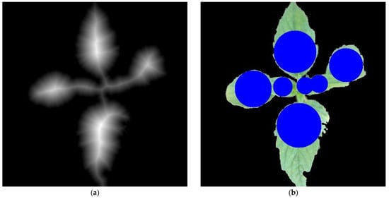 Following the extraction of the “one plant image mask”, the image was cropped, typically with an additional 5 pixels in every direction. This mask retained the same pixel/mm size as the original image and was utilized for distance transformation, which will be elaborated upon in subsequent sections.