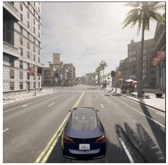 CARLA [33] was developed to cater to autonomous driving systems’ creation, training, and certification needs. This platform provides open-access digital assets encompassing cityscapes, buildings, and a variety of vehicles, all meticulously crafted for the advancement of autonomous driving research. Complementing these resources are the freely available open-source code and protocols. The simulation environment is remarkable for its flexibility, offering a wide array of options to customize sensor configurations and climatic conditions and to exercise complete control over both static and dynamic elements within the simulation. CARLA stands out as a modular and flexible API, purpose-built from the ground up to facilitate diverse research endeavors associated with autonomous driving.