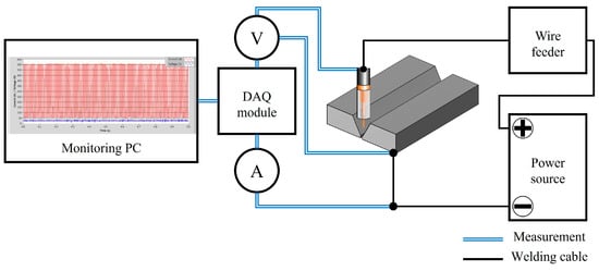 Gas metal arc welding (GMAW) is a crucial process that is extensively employed in various industries, including automotive, heavy equipment, and shipbuilding. The weld quality directly impacts the integrity, durability, and safety of the fabricated components. Traditional methods to assess the quality of weld joints involve destructive testing, such as confirming weld shape [1,2,3,4] and evaluating mechanical properties through tensile testing [4,5,6] and fatigue testing [7,8,9,10]. However, these methods only facilitate a partial inspection of the weld joints and indirectly represent the welding quality of the overall structure [11,12]. Consequently, there is a significant need for research on non-destructive testing methods to predict welding quality, with preliminary studies indicating potential in this area.