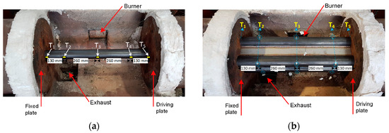 Two different cross-sections of columns were utilised: CHS (Circular Hollow Section) and hybrid (a section with four UHSS CHS welded to four plates of SS, stainless steel). These cross-sections are depicted in Figure 1. Additionally, five thermocouples were used for both cases, as specified by these experimental investigations [11,12], see Figure 2.