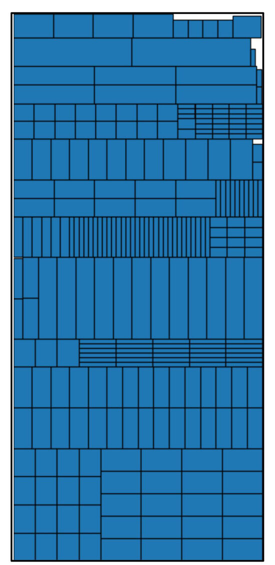 - As shown in Figure 6, parts are arranged in sequence according to the above two steps. When the remaining width of Stripe1 cannot accommodate more parts, the parts are arranged into Stripe2, and the height of Stripe1 is updated. The height of Stripe1 is the highest point in Stripe1. All the parts are arranged according to the above steps.